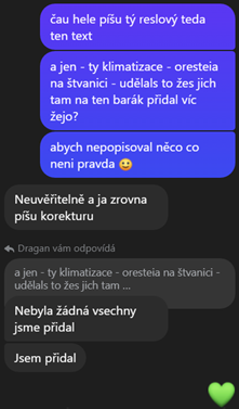 Jaro. Frič toužil po barevné scéně. Bavili jsme se o velikonočních rituálech. Ale hodně to souvisí i s dobou, ve které žijeme, s grafickým designem, s tím, jak se zachází s vizualitou. Zelenou hodně podtrhujeme. A zelené je také klíčovací pozadí v televizním studiu. Realita, která se finguje, natáčí, aby ukazovala něco jiného než skutečnost. Ale s tím jsme nakonec ani moc nepracovali. Spíš to pro nás byla ta jarní zelená, probouzení života, kult jara.